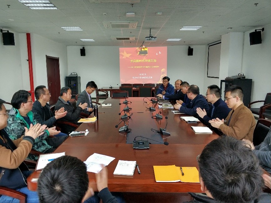 段建东教授作了题为《开启新时代中国之治,贯彻党的十九届四中全会精神》的专题党课。段老师回顾和解读了十九届四中全会精神,分别从“坚持党的集中统一领导、坚持人民当家作主、坚持全面依法治国,到坚持全国一盘棋、坚持各民族一律平等、坚持以人民为中心的发展思想、坚持改革创新、坚持“一国两制”、坚持独立自主和对外开放相统一……”等13个方面,详细解读了等我国国家制度和国家治理体系的显著优势,并分享了自己的学习体会和个人收获。