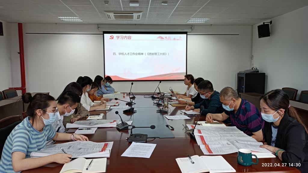 会上,支部书记许红详细解读了《中共西安理工大学委员会巡视整改暨教育领域突出问题专项整治工作方案和台账》、《电气工程学院党委巡视整改和教育领域突出问题专项整治工作台账》、《关于2021年度基层党建工作考核情况的反馈意见》、中共中央办公厅《关于推动党史学习教育常态化长效化的意见》等文件;组织委员侯贝贝传达了学校人才工作会精神(《西安理工大报》);纪检委员王希带领支部全体同志观看了《惩前毖后》纪录片,学习了《十九大以来陕西省高校违纪违法典型案例警示录》。