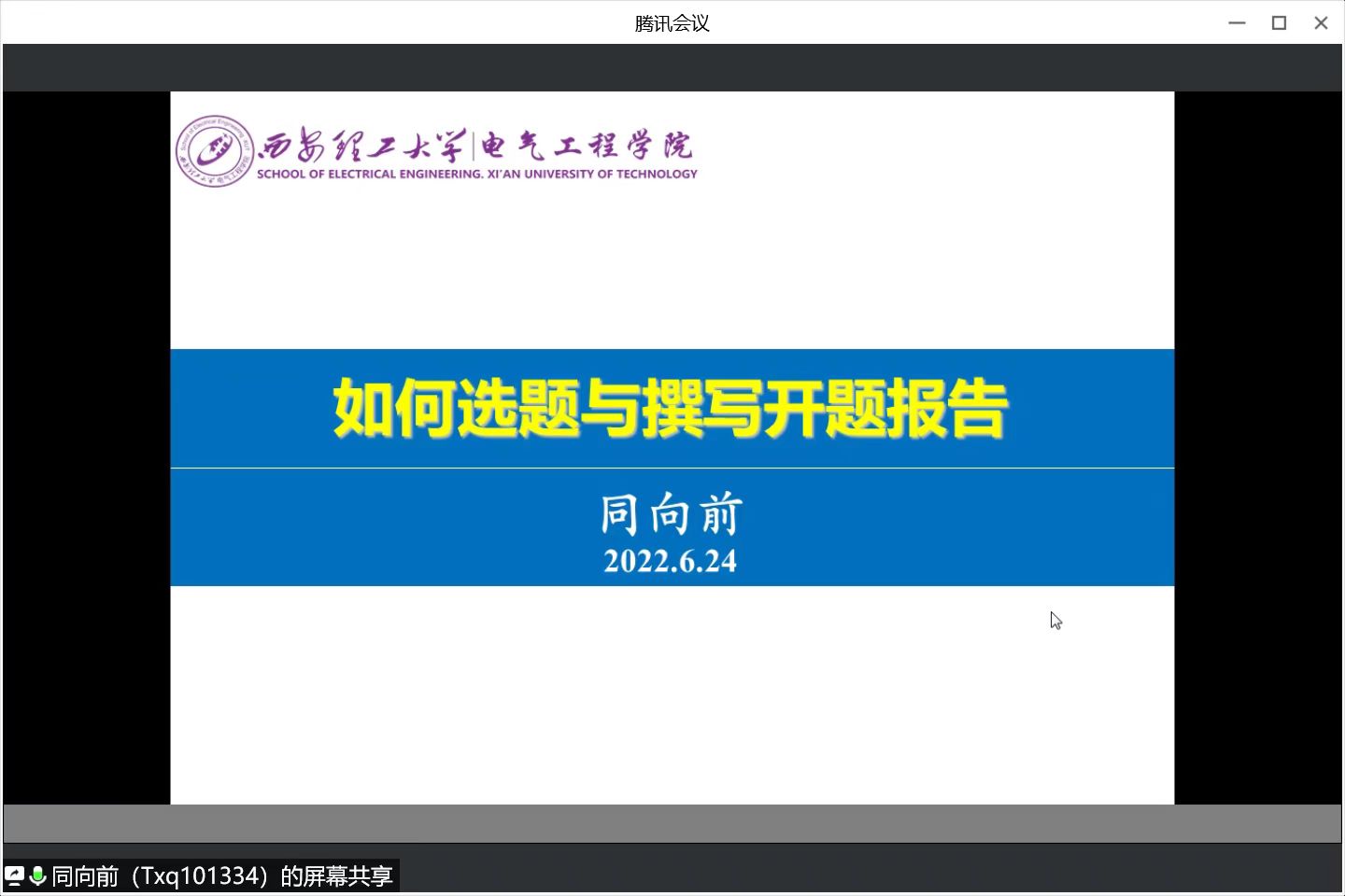 为做好2021级研究生学位论文的选题与开题,6月24日晚,电气工程学院举办春季学期第四期“禾望电气·名师高徒”学术讲座。本次讲座特邀请学院同向前教授担任主讲嘉宾,学院2021级研究生、研究生会代表参加讲座。根据防疫要求,本次讲座以腾讯会议的方式线上进行。