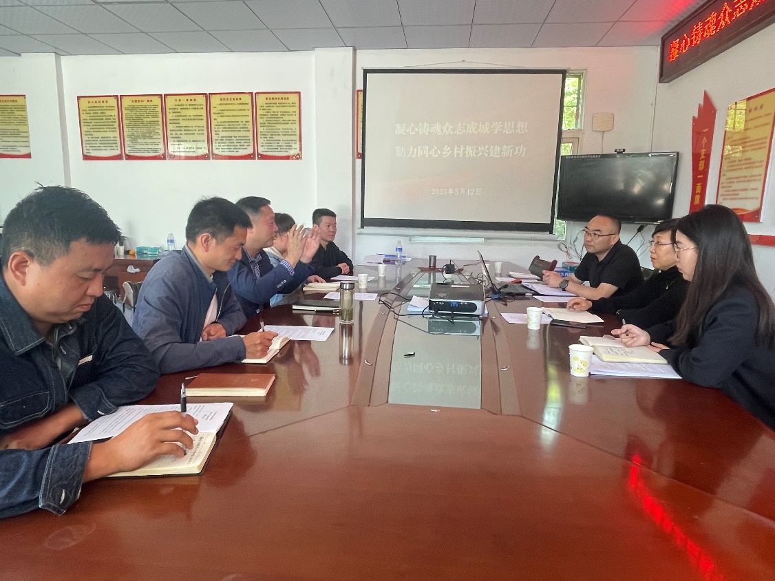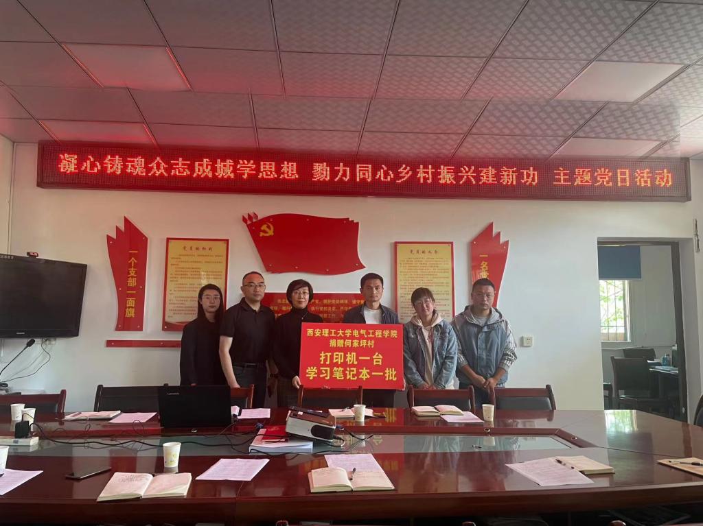 主题党日活动围绕学习贯彻习近平新时代中国特色社会主义思想主题教育展开。活动中,白雀寺镇党委副书记、镇长邢晓庆详细介绍了镇村两级乡村振兴发展情况,生动诠释了当地特色产业和民风民俗。李虹介绍学院基本情况和帮扶工作;组织员王海生讲授党课《凝心铸魂众志成城学思想 戮力同心乡村振兴建新功》,宣讲学习贯彻习近平新时代中国特色社会主义思想主题教育精神、二十大精神,结合村工作特点和村民关心视角,解读2023年全国两会关于乡村振兴工作的有关精神;辅导员方筱滨领学党章,孔雪琪介绍结对帮扶何家坪村学生方案。学院向何家坪村捐赠打印机一台、硒鼓以及学习笔记本若干。