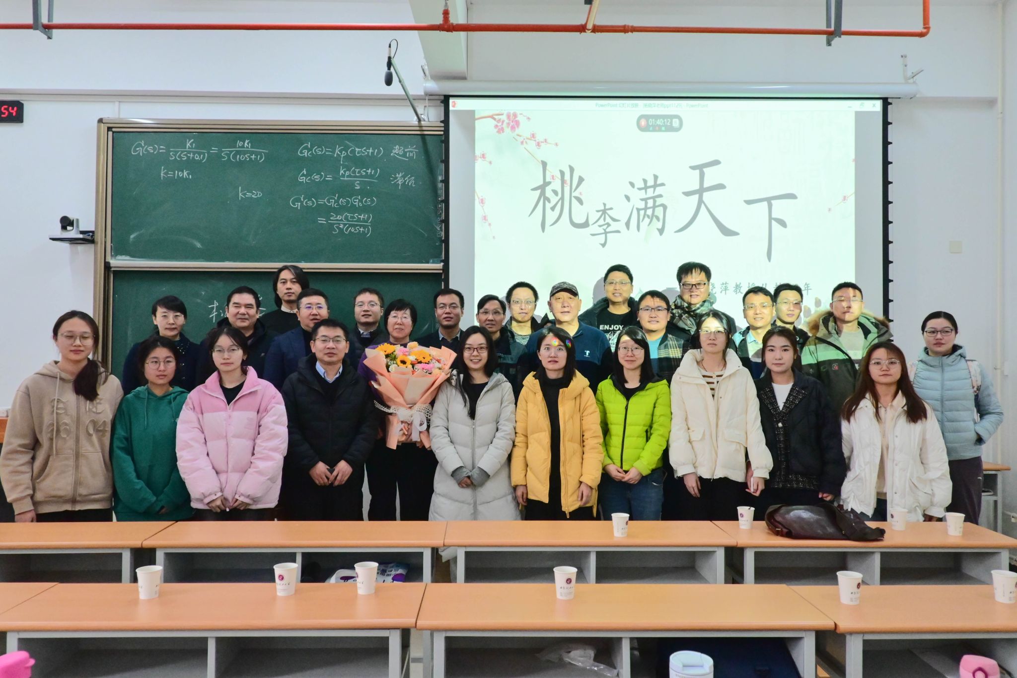 随后,杨晓萍教授发表退休感言。杨老师对30年来的从教生涯进行了回顾,她从第一次走上讲台到最后一节课站在讲台,30年如一日的将本科生课程《自动控制理论》讲了30遍。她对待教学工作呕心沥血,投入大量时间精力,授课总门数多达14门。杨老师表达了对学院、系所和同事的由衷感谢。在发言的最后她还不忘强调,若同学们对课程存有疑问,可以随时来咨询。