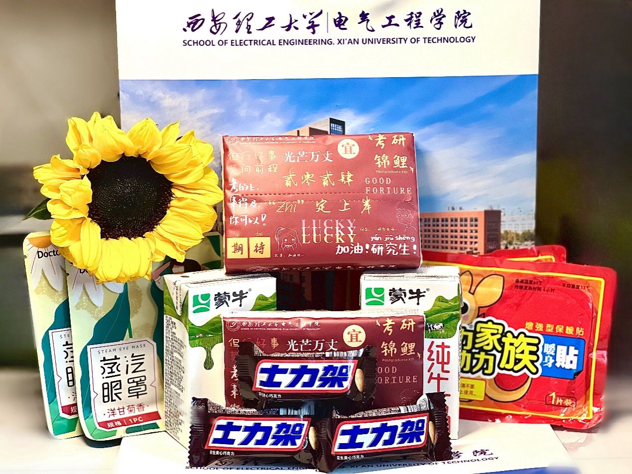 礼包内有充满寓意的礼物:上岸登机牌始发站为西安理工大学,目的地为每一位同学的理想院校,寓意着学院希望所有考研人顺利上岸,抵达梦想的彼岸;暖宝宝可以为大家在寒冷的冬天带来温暖,为大家复习考研保驾护航;蒸汽眼罩寓意着大家在每天的复习过程中不断进步,蒸蒸日上;士力架为大家补充能量,同时也希望大家事事如意;牛奶寓意着大家牛气冲天,在考研的过程中一切顺利;定制手帕纸,正面是学院设计的励志封面,寓意着大家纸定行,背面有每一位考研人的姓名和学号,希望所有人都顺利上岸!