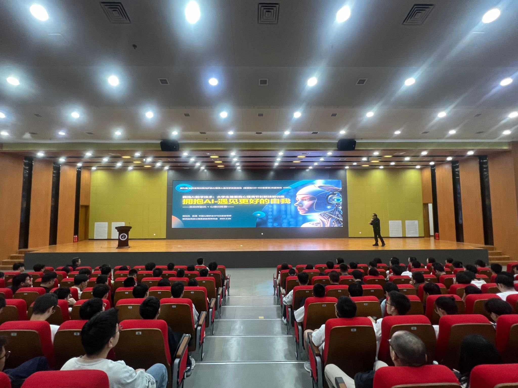 讲座伊始,郑教授首先强调了心理健康对于大学生成长的重要性。他表示,面对学习、生活和就业等多重压力,大学生需要学会调整心态,保持积极向上的精神状态。随后,郑教授从AI带来了挑战和风口、AI来自认知心理学、AI需要人类改变等方面深入剖析了AI数字技术在心理健康领域的应用前景,指出数字化、智能化的心理健康服务将成为未来的发展趋势。