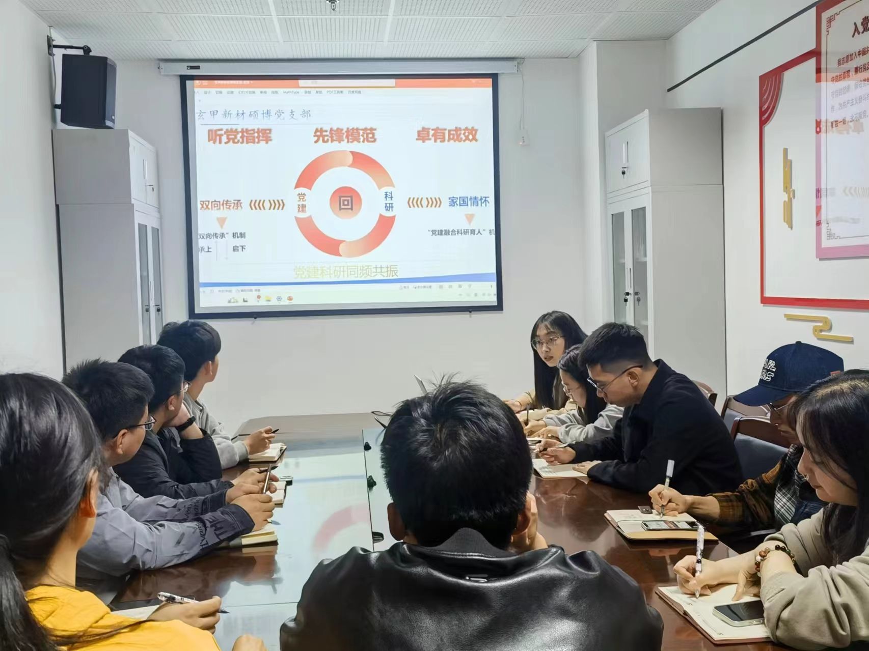 梁倩介绍了所在“玄甲新材硕博党支部”的总体情况,分享了在支部建设中,要寻找党建和科研的“粘合剂”,做到党建与科研同频共振,创新性提出“党建工作-传承共享-家国情怀-科学研究”的研究生党支部“回字”工作模式, 将党建工作与服务社会、科研成果落地转化相结合,在进一步提升研究生能力与水平的同时,促进科研成果服务国家。此外,她强调支部宣传工作尤为重要,通过视频、文字等形式记录和总结支部阶段性成果,将进一步强化党员亮身份、做示范、当先锋。