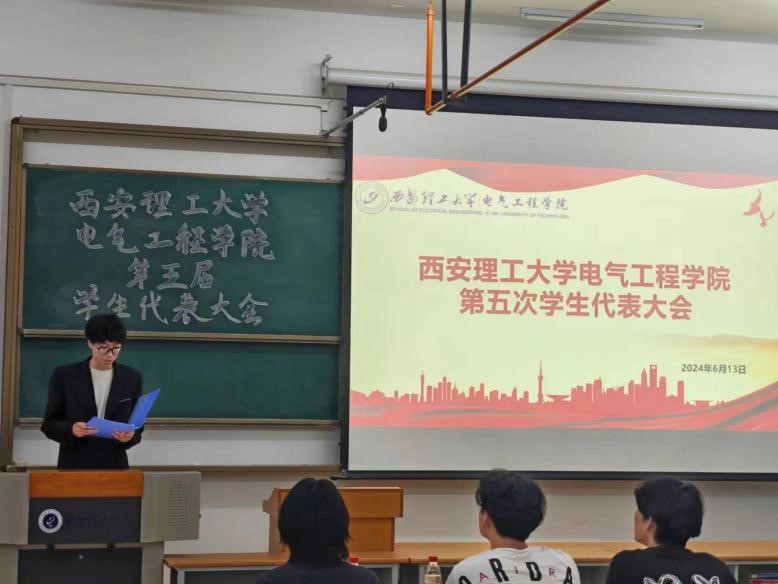 2024年6月13日,西安理工大学电气工程学院第五次学生代表大会在曲江校区综合南楼顺利召开。第四届主席团成员、兄弟学院代表及学生代表参加本次学生代表大会,本次大会由我院文体部负责人丁炜琛主持。