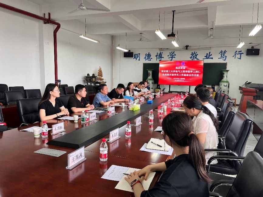 7月10日,为深入推进用习近平新时代中国特色社会主义思想铸魂育人,提升学生思想政治教育工作的高质量发展,增进学院之间的经验交流和互学互鉴,电气工程学院学工办一行在学院党委副书记兼副院长何海生的带领下赴西安工业大学开展学生工作交流会。西安工业大学电子信息工程学院党委副书记王利军及学工办全体辅导员出席了会议。会议由西安工业大学电子信息工程学院学工办主任何鹏程主持。