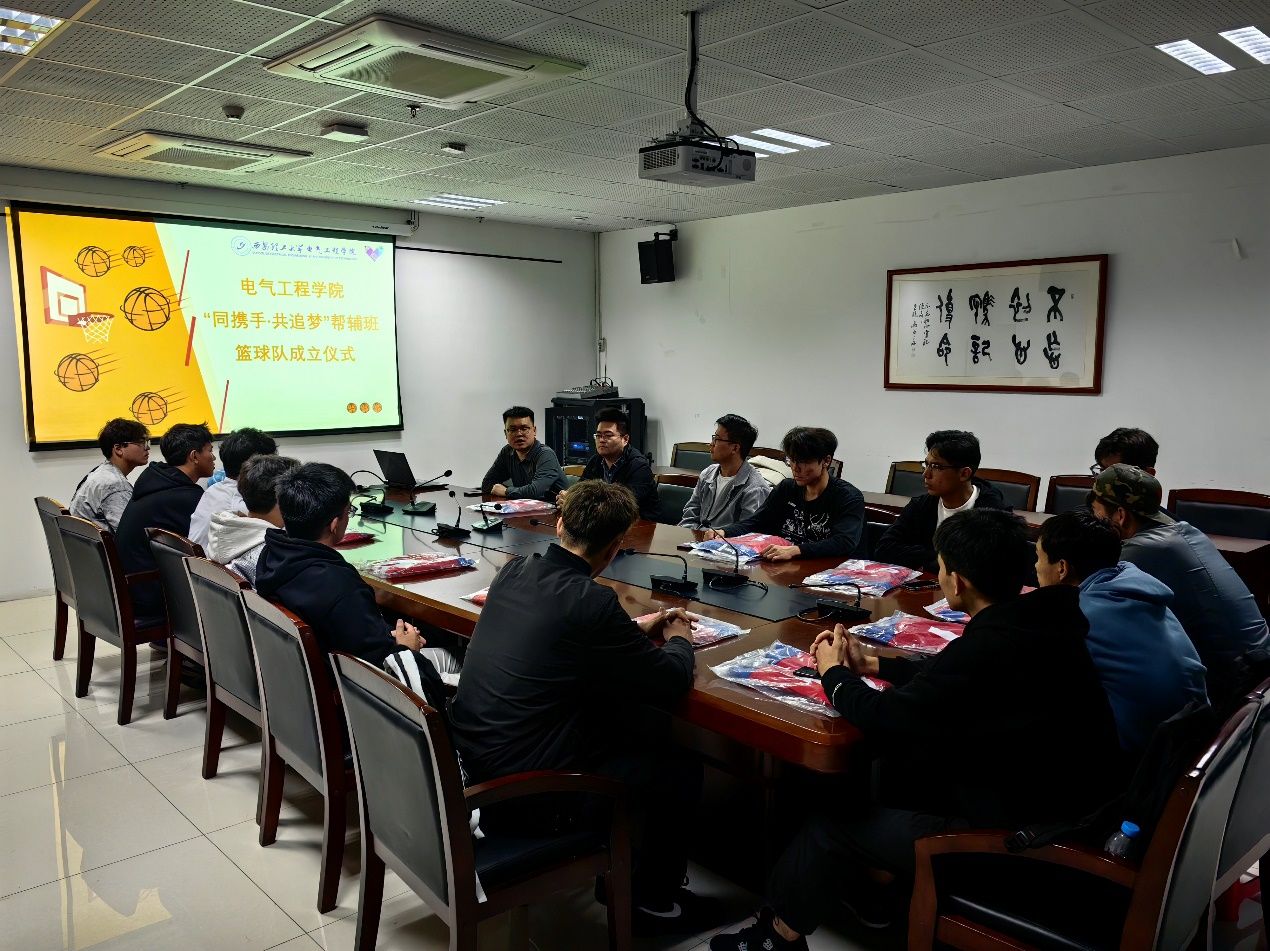 10月28日,为丰富各民族学生“第二课堂”,培养各民族学生热爱体育锻炼,潜移默化铸牢中华民族共同体意识,电气工程学院联合“同携手·共追梦”帮辅班组建第二届各民族学生篮球队。民族管理中心教师孟庆龙、张鹏鹏,各民族篮球队学生参加成立仪式。仪式由电气工程学院学工办主任、帮辅班管理教师巩晶骐主持。