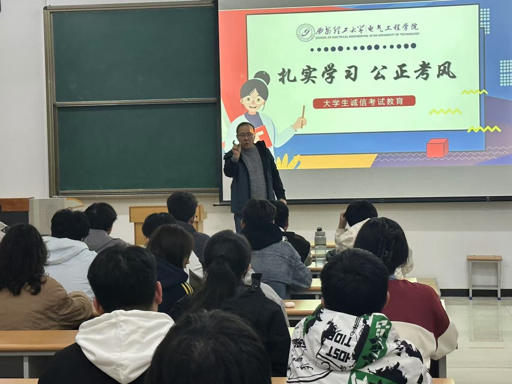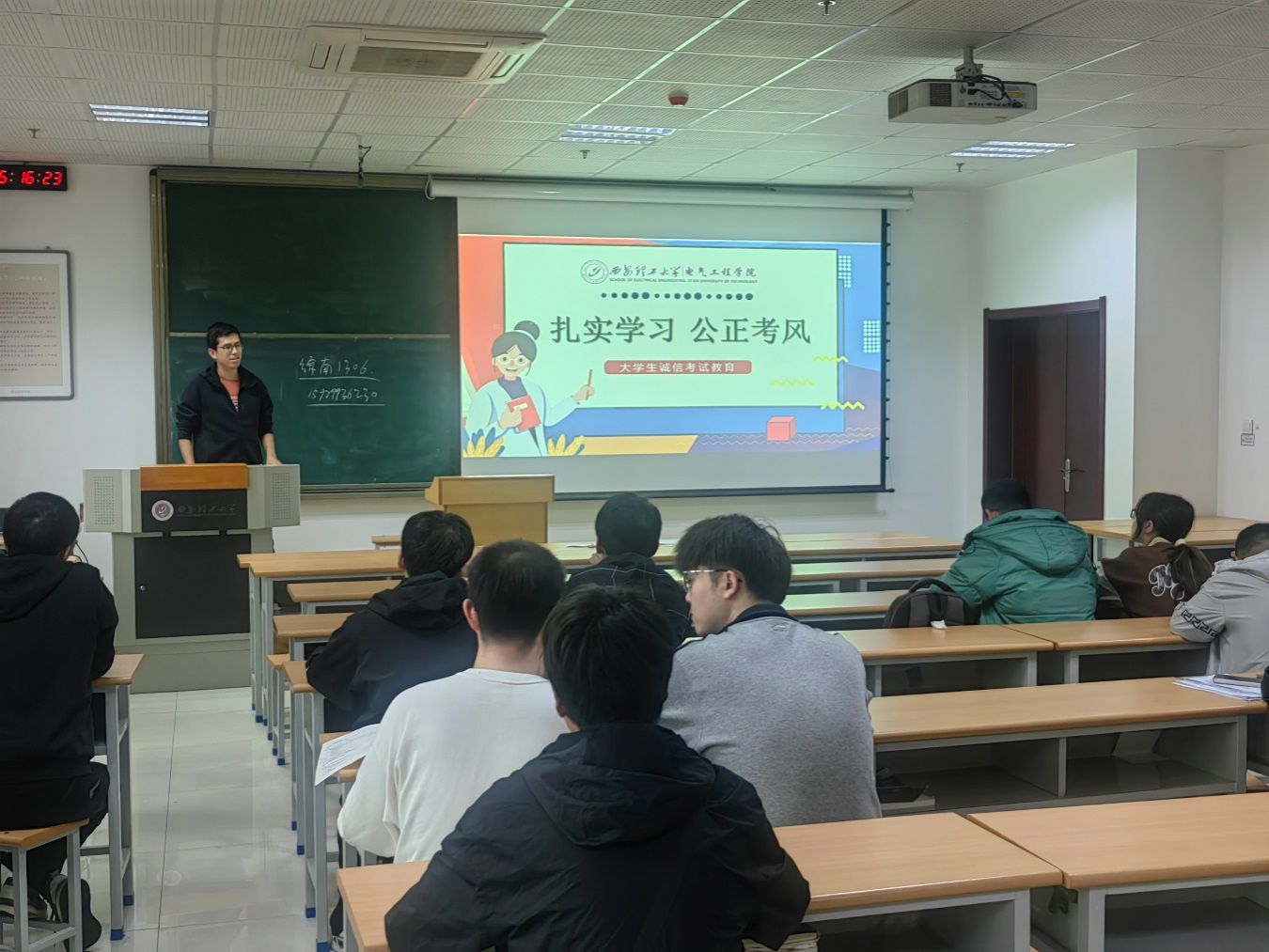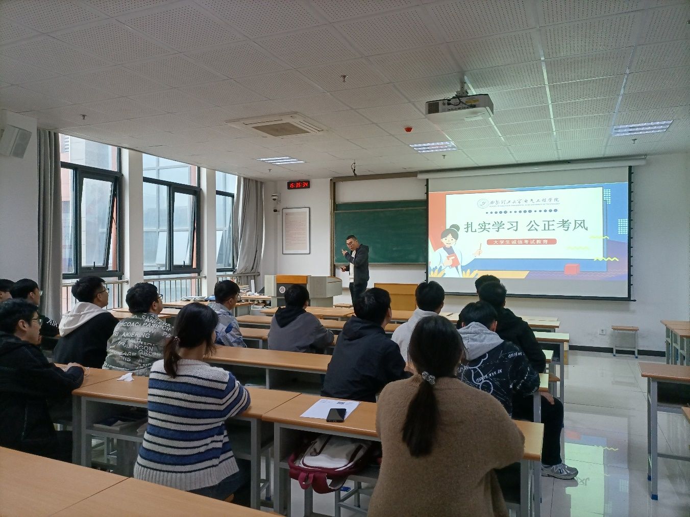 主题班会,引领学习新风尚。为落实《西安理工大学电气工程学院加强学风、考风、教风建设实施方案》,自2024年11月起,学院组织开展了以 “扎实学习,公正考风” 为主题的系列班会活动。在主题班会上,各班导师引领学生学习《西安理工大学本科课程考试规程》以及相关警示教育资料,让学生清晰知晓考试红线,明确行为底线,拒绝 “躺平” 心态,领悟 “持续努力” 的真谛,切实增强学生的诚信与自律意识,为公正考风奠定坚实基础。