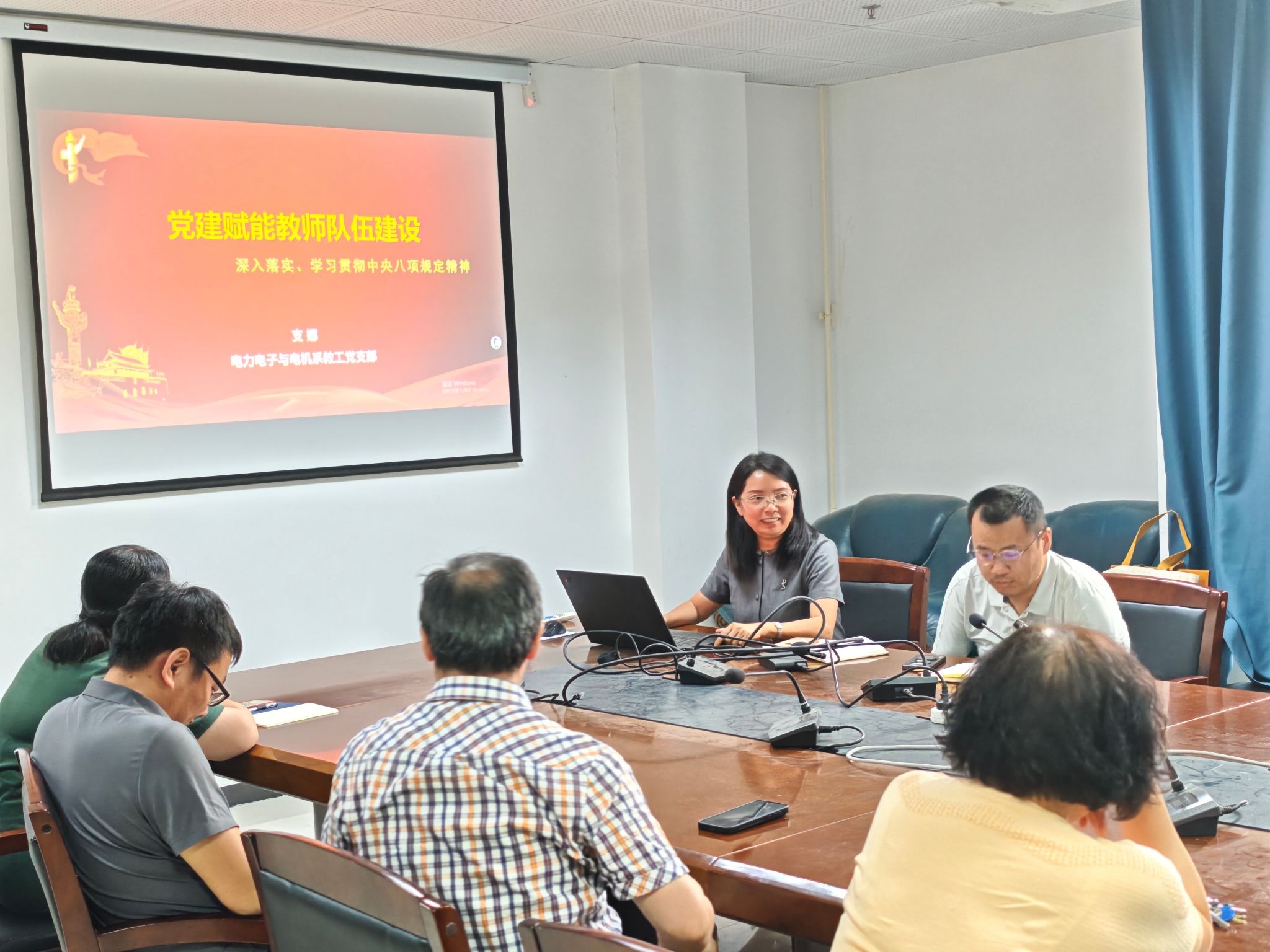 为深入贯彻落实全面从严治党要求,增强教师党员自律意识,5月14日,电气工程学院电力电子与电机系教工党支部在综合楼1211会议室召开深入贯彻中央八项规定精神学习教育专题学习会。支部联系院领导李虹书记出席,会议由支部书记支娜教授主持,全体党员参加了学习。
