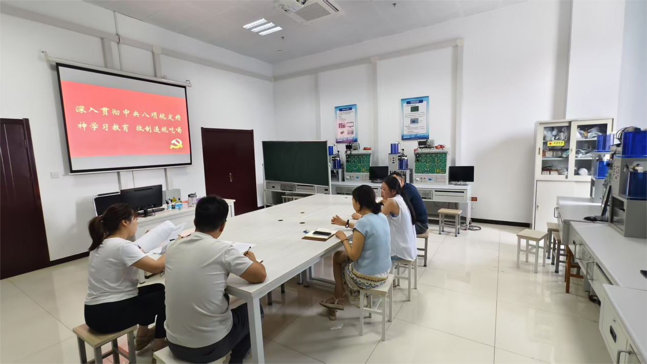 2025年6月18日,电气工程学院实验中心党支部组织开展“深入贯彻中央八项规定精神学习教育 抵制违规吃喝”专题学习,旨在加强党风廉政建设,强化党员干部纪律作风教育。
