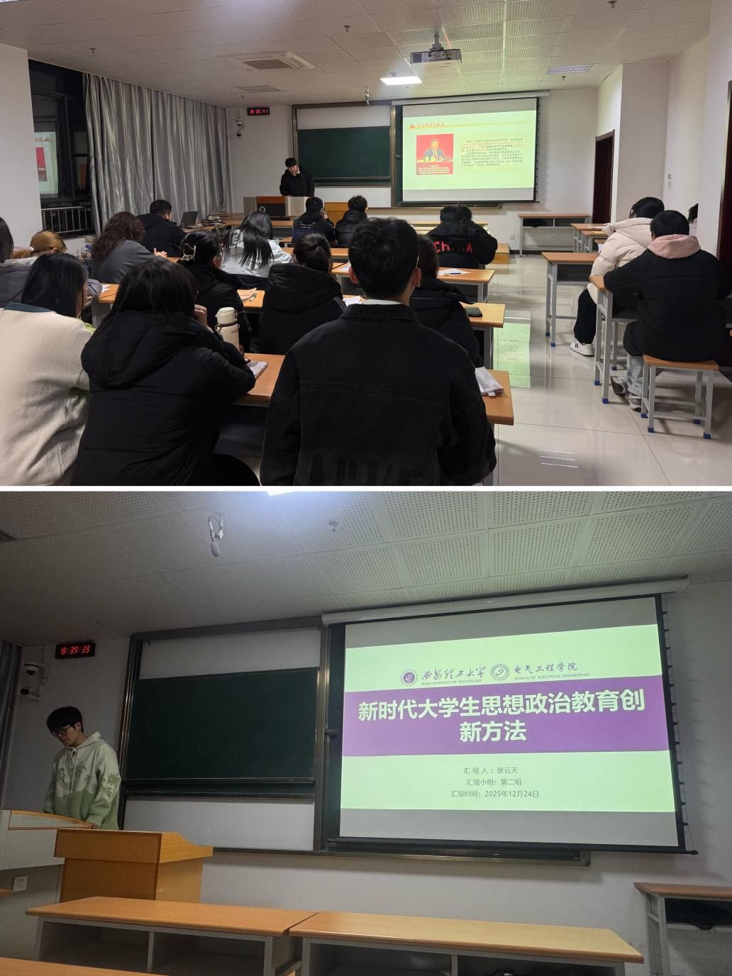 为切实检验入党积极分子培养成效,促进理论学习与实践能力深度融合,电气工程学院于12月24日晚举办了第81期入党积极分子实践考核汇报会。各组学员代表围绕主题调研与志愿服务两大板块,系统展示了实践过程中的思考、行动与成长。