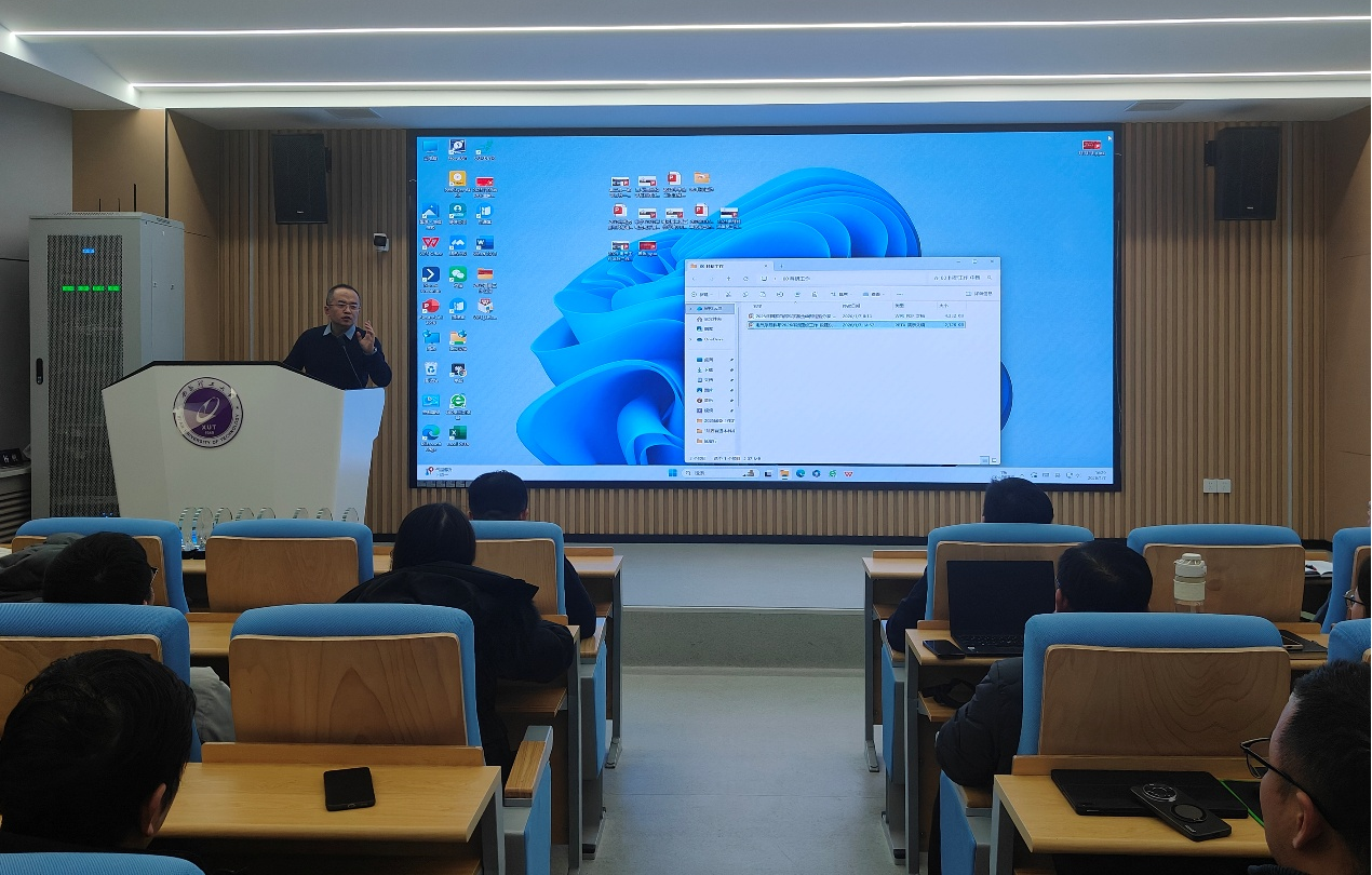 为扎实推进2026年国家自然科学基金申报工作,我院1月7日下午在曲江校区综南楼119会议室召开了2026年国家自然科学基金申报工作中期推进会。学校科研院院长尹忠刚教授、学院院长贾嵘教授、各系(所)负责人及全院教职员工100余人参加了中期推进会。会上特别邀请了杨磊教授分享了国家基金申报经验和心得,中期推进会由副院长段建东教授主持。